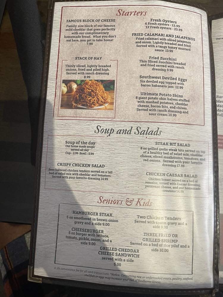 "The Legendary Barn Door Steakhouse in Odessa, TX is a must-visit for seafood and steak lovers. This establishment offers a diverse menu with options for vegetarians as well. From slow-cooked Baby Back Ribs to juicy burgers and refreshing salads, there's something for everyone. The historic atmosphere adds to the dining experience, and the customer service is exceptional.
